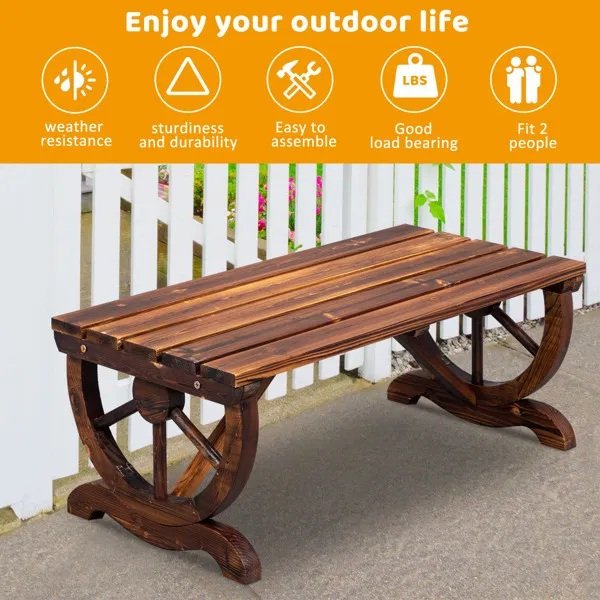 2-Person Rustic Garden Bench; Outdoor Wagon Wheel Porch Bench for Backyard Patio Garden; Brown