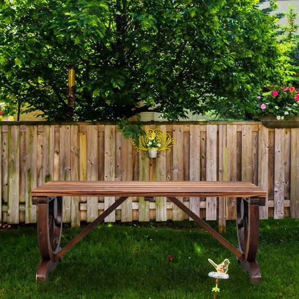 Home > 2-Person Rustic Garden Bench; Outdoor Wagon Wheel Porch Bench for Backyard Patio Garden; Brown