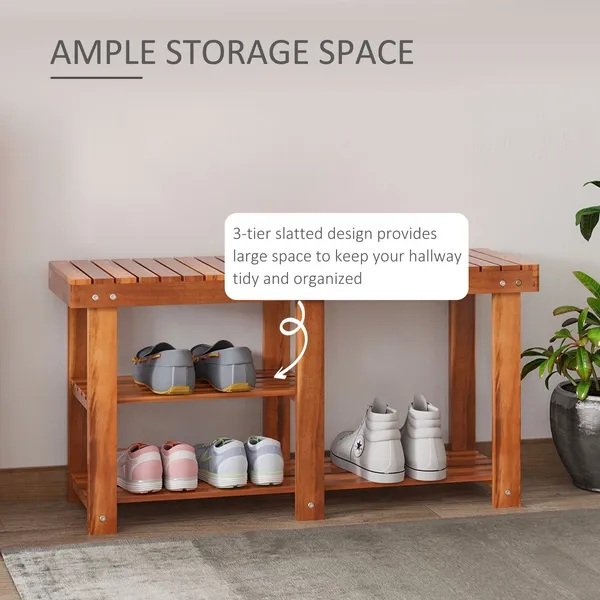3-Tier Shoe Rack Bench, Acacia Wood Shoe Organizer, Rustic Entryway Bench with Storage Shelves for Entryway, Hallway, Livingroom, Teak