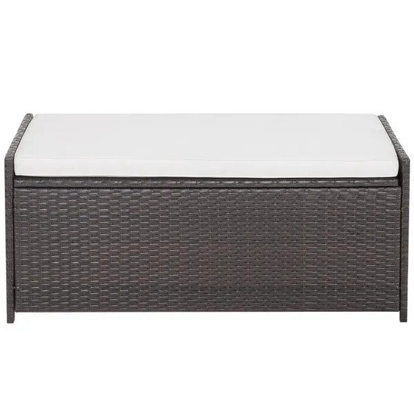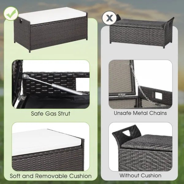 1.3-in-1 Multifunctional Design: This patio storage box can be also used as a patio bench or as a coffee table. And designed with strengthened metal structure, the bench features 795 lbs max load. Moreover, the hand-woven mix brown PE rattan looks elegant and withstands long-time use.