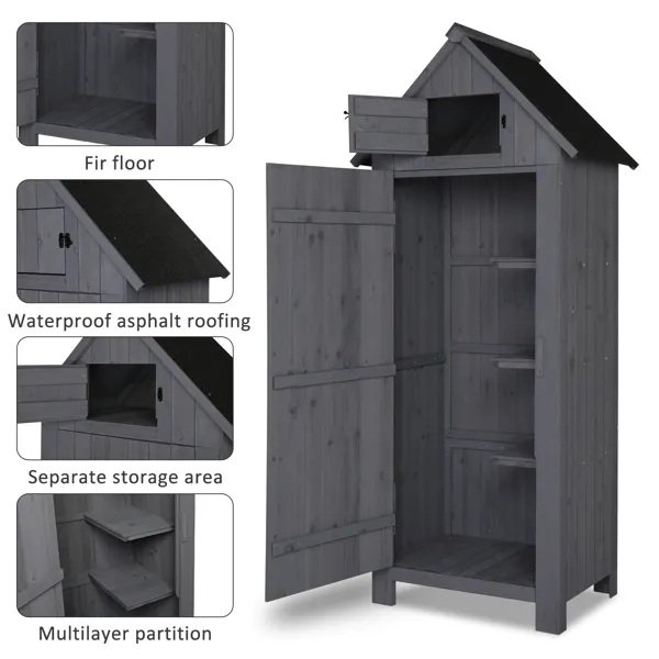 Home > 70in Black Double Slope Top Fir Courtyard Storage Room Dark Gray