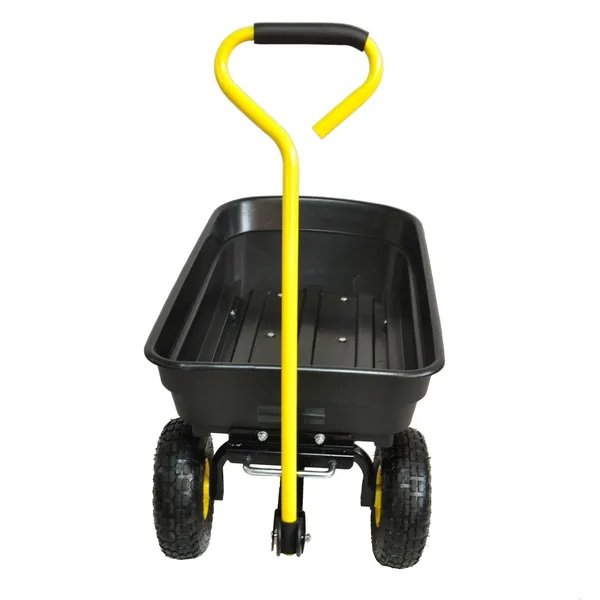 Product NameFolding car Poly Garden dump truck with steel frame, 10 inches. Pneumatic tire, 300 lb capacity body 55L black