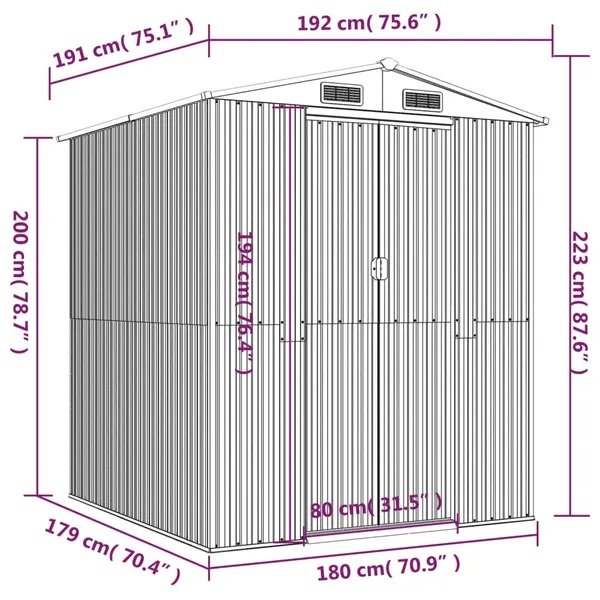 Home > Garden Shed Light Gray 75.6"x75.2"x87.8" Galvanized Steel