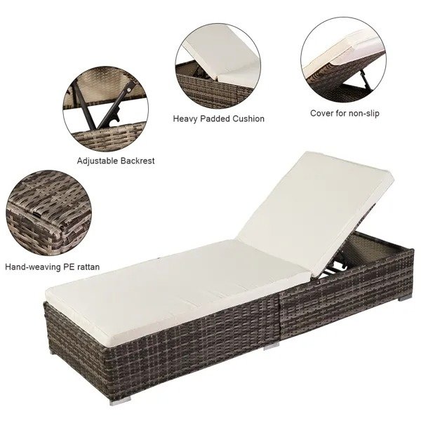 This lounge chair is weather-resistant and lightweight for easy carry. Its contemporary style make it suitable for pool sides and outdoor living. Great for sunbathing; relaxing by the pool or in the shade. Adjustable backrest positions can be adjusted from bottom to high place; which is designed to meet your different demands. You can enjoy a relaxing nap or rest on this chaise as Steel frame is solid enough to provide a support.