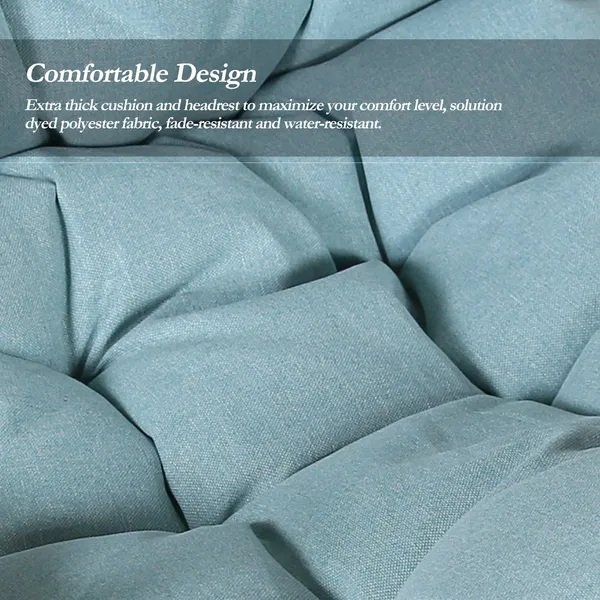 Our outdoor wicker hanging basket chair made from sturdy powder coated steel frame, rust-resistant and durable, guaranteeing long term use. Beautifully wrapped with handwoven premium PE wicker, weather-resistant and UV resistant, bring years of enjoyments. Topped with soft 100% solution-dyed polyester seat cushion and a headrest pillow, high colorfastness and water-resistant, creating ultimate in comforts. The patio wicker hanging chair combined simplicity with modern, boosting the atmosphere of your outdoor or indoor space with stylish charm.