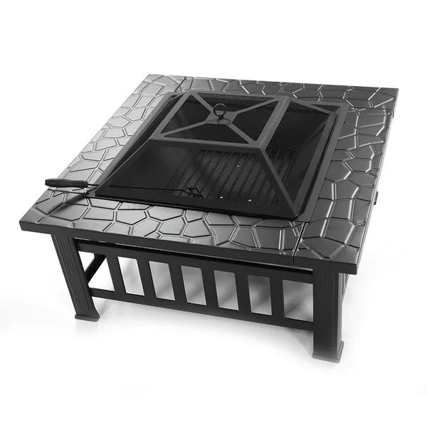 This outdoor square fire pit is constructed of heavy duty iron mesh and frame. The garden stove brazier is built in square shape for stability. This square fire pit features with mesh lid to prevent burning embers blowing and comes with a poker to stoke fire and remove the mesh lid safely. Its scientific and reasonable structure is designed by professional engineer. This is not only a practical item for home use, but also a good landscape for garden or courtyard. With fine workmanship on the basis of high-class materials, this fire bowl is in good quality and reliability. Also, included accessories are provided for convenient operation. With this fire bowl, you will get warm even in the chilly winter days. No more hesitation!