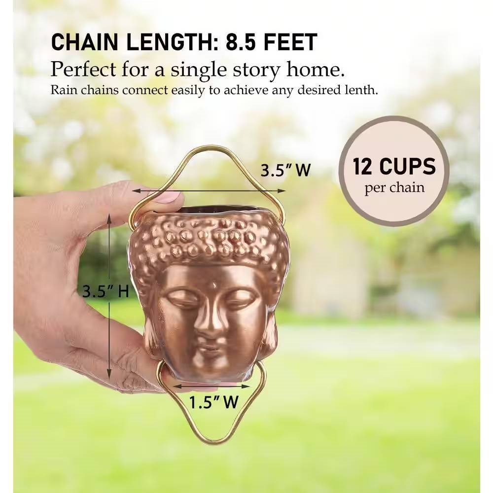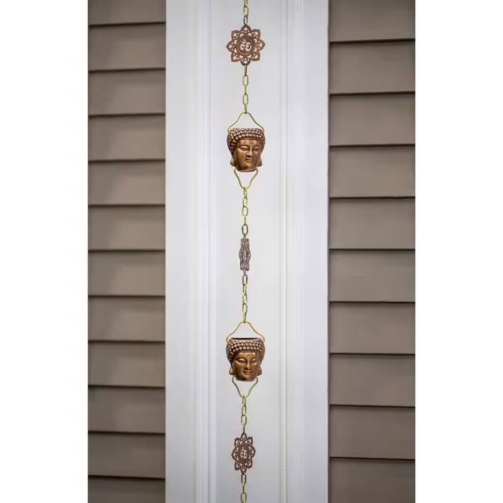 8.5 ft. Buddha Head Cups and Ohm Ornaments Copper Rain Chain Gutter Downspout 8.5 ft. Buddha Head Cups and Ohm Ornaments Copper Rain Chain Gutter Downspout 8.5 ft. Buddha Head Cups and Ohm Ornaments Copper Rain Chain Gutter Downspout 8.5 ft. Buddha Head Cups and Ohm Ornaments Copper Rain Chain Gutter Downspout