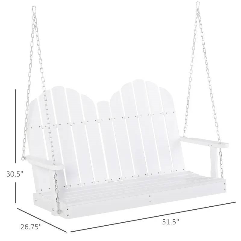 Swing in style this summer with this White Solid Wood 2-Seater Hanging Patio Porch Swing. Features a 2 person loveseat that holds up to 440 lbs. The wide armrests and tall backrest make this wooden porch swing comfortable for reading, relaxing and enjoying your outdoor space in style. This outdoor swing bench is constructed of premium solid wood for stability. The PU-painted surface fights both water and air moisture, features that make this hanging porch swing perfect for outdoor use. Comes with steel chains for hanging that provides strong support and ensures a steady swinging motion. The slatted design of the seat helps prevent water from pooling as well. The stained wood appearance and southern charm style of the wood swing seat is the perfect complement for your porch design, and is ideal for installing in the garden, backyard, patio, and more.