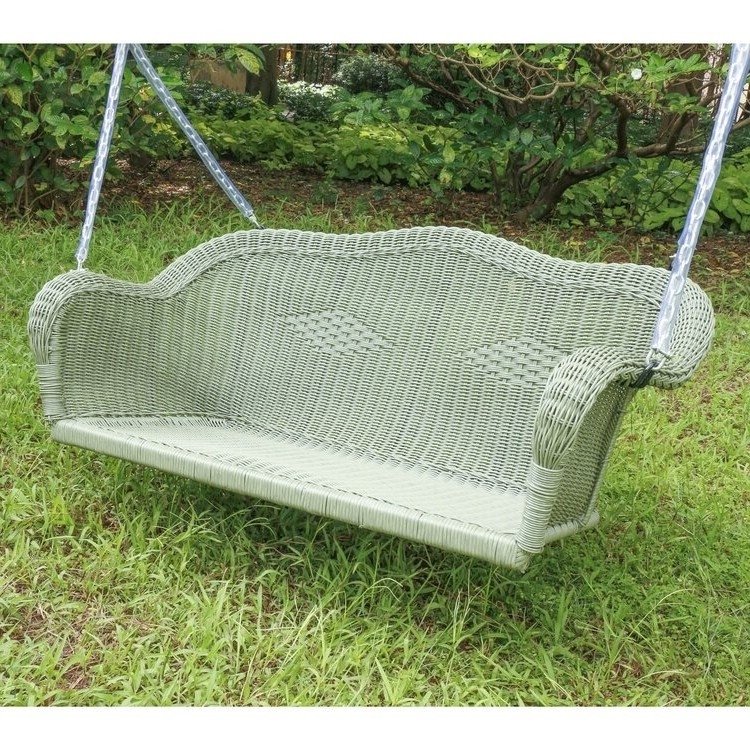 Resin Wicker Porch Swing with 4-ft Hanging Chain in Moss