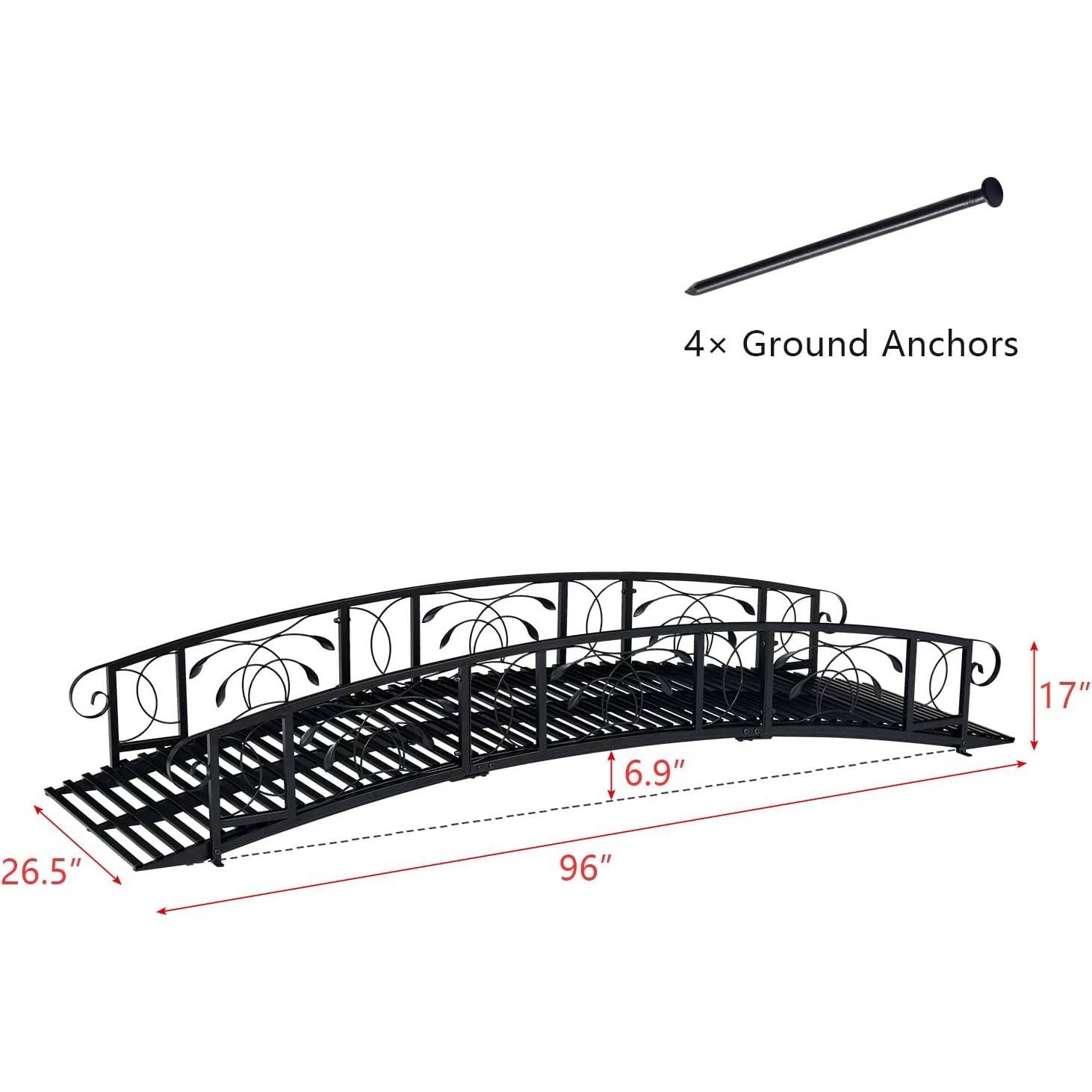 • Outdoor 8-Ft Heavy Duty Black Metal Arch Garden Bridge with Side Rails