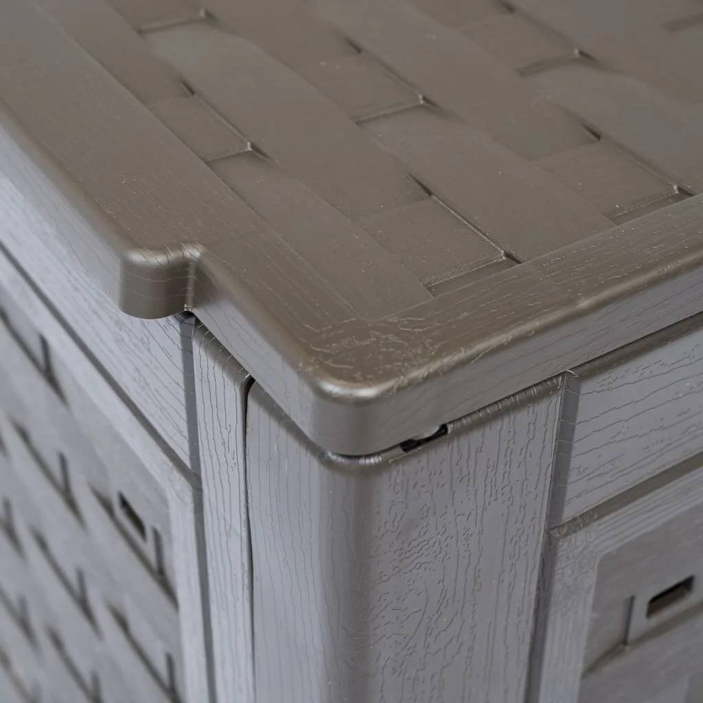 Our Set of 2 - Outdoor Garden 158 Gallon Compost Bin Set in Brown Plastic Rattan will surely be a perfect option to collect organic waste, including leaves, weeds, and lawn clippings. The compost bins are made of plastic which makes them UV and weather-resistant. The units have a lightweight body as well as a neat appearance. They have split lids for optimal irrigation and ventilation. Thanks to ventilation holes inside parts, the waste boxes can exquisitely achieve optimal composting. These square composters will come in very handy when recycling, and meanwhile, they will blend naturally into any garden.