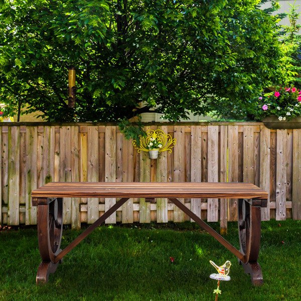 Home > 2-Person Rustic Garden Bench, Outdoor Wagon Wheel Porch Bench for Backyard Patio Garden, Brown