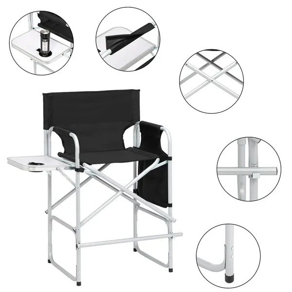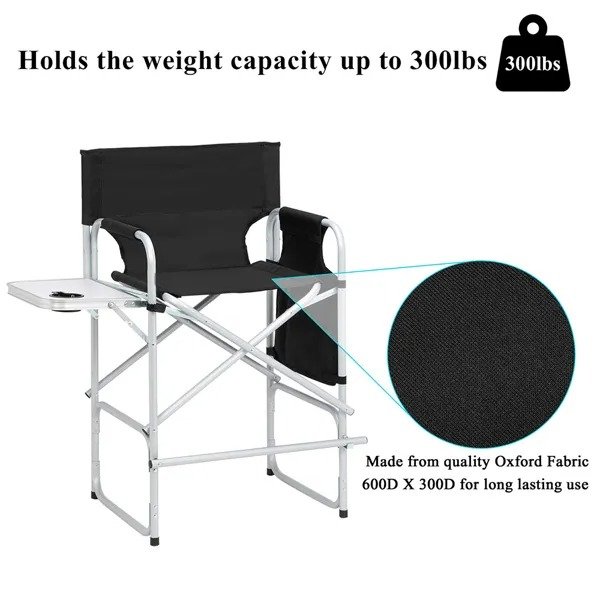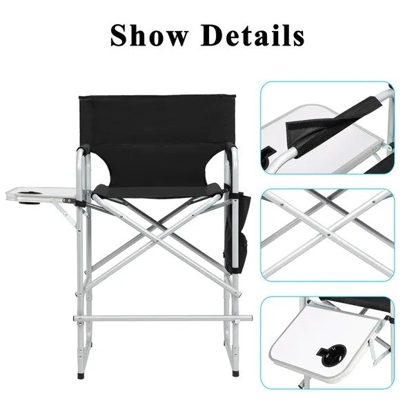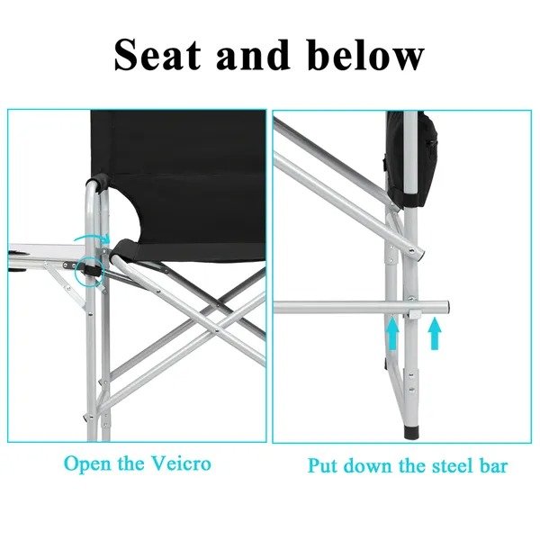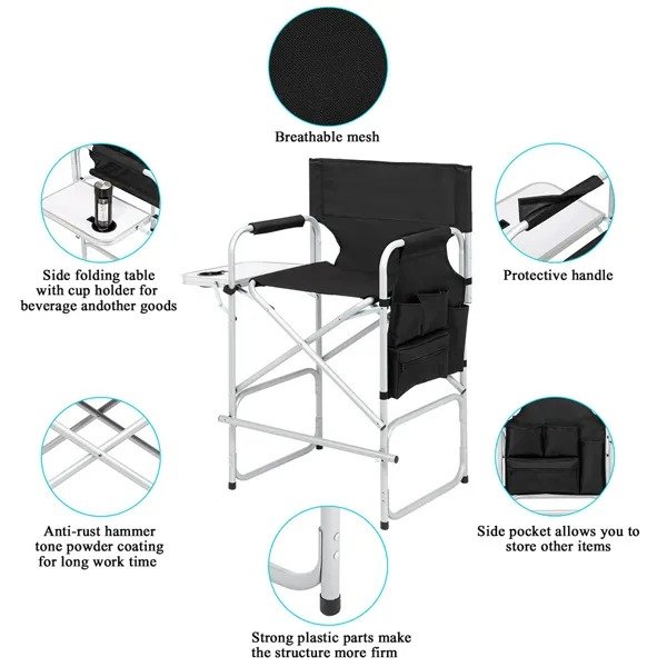 The director chair is designed with 600D x 300D oxford fabric, it adopts high-strength material and delicat workmanship to ensure excellent quality and durability. With a foldable footrest, which can keep your feet comfortably secure on the chair. Besides, a built-in bottle holder, a large mesh bag as well as storage bags are also designed for giving you endless convenience. So Don't hesitate, it's worth buying!