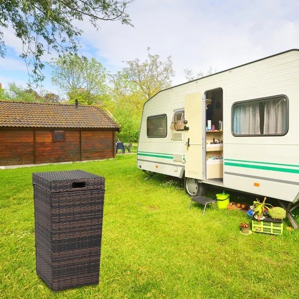 Here we introduce our With Top Cover Iron Frame Rattan Trash Can, which can be used indoors and outdoors. It is made of UV-resistant PE rattan and steel frame. The sturdy steel frame is durable and prolongs the service life. The rattan weave is exquisite in workmanship, and the shape is retro and elegant, which can match the home style. The detachable lid not only makes it easy to take out the trash and replace the trash bag, but also helps you keep the smell when you close it. Importantly, the internal frame can hold the trash bag in place. What are you still hesitating about? Hurry up and place an order!